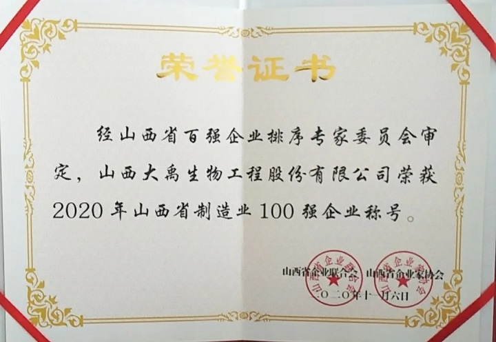 Dayu shengwu won the provincial top 100 honor!